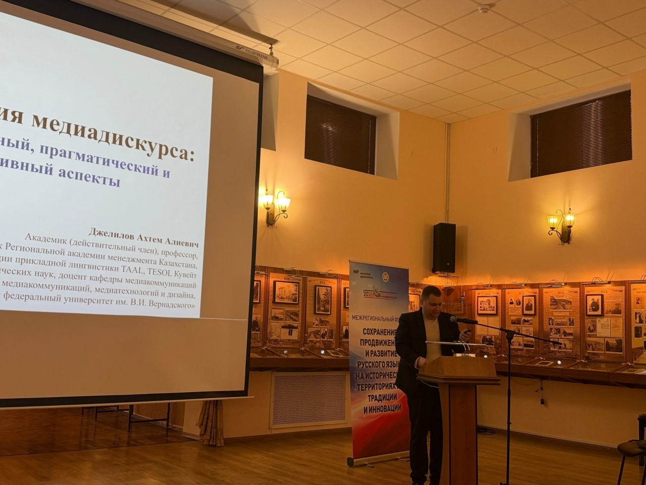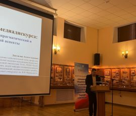 В форуме приняли участие более 200 человек, в том числе доцент кафедры медиакоммуникаций ИММиД Ахтем Джелилов, который выступил с докладом «Фразеология медиадискурса: функциональный, прагматический и когнитивный аспекты».